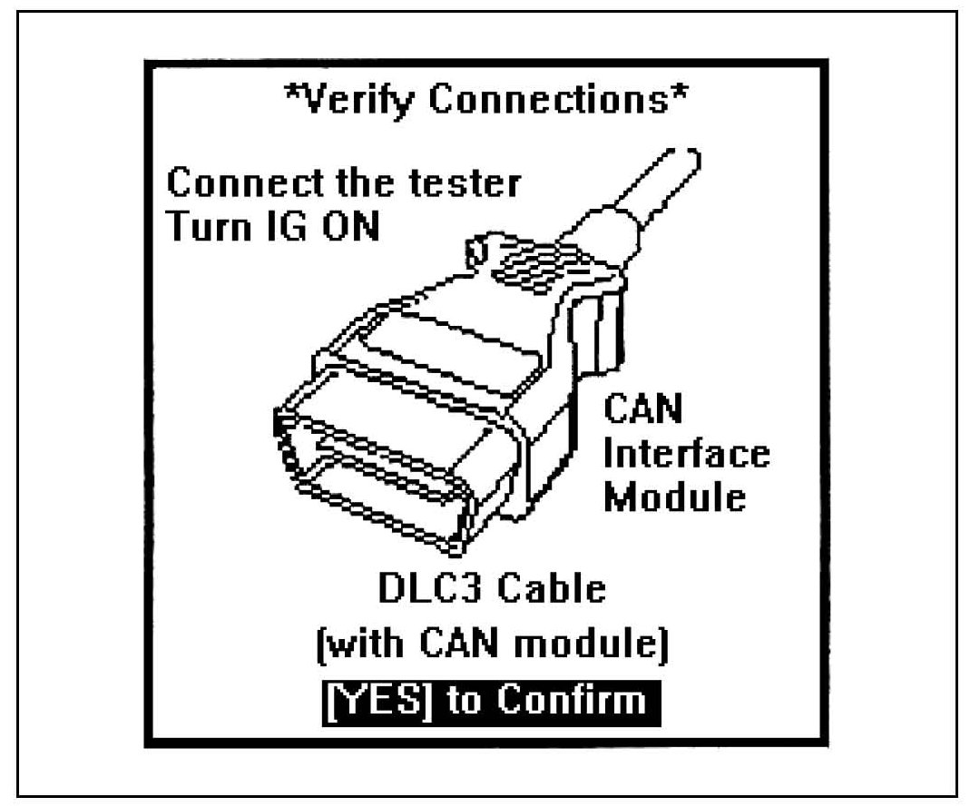 ^ After pressing the "YES" key, the diagnostic tester will momentarily display an "INITIALIZING CAN INTERFACE" screen.