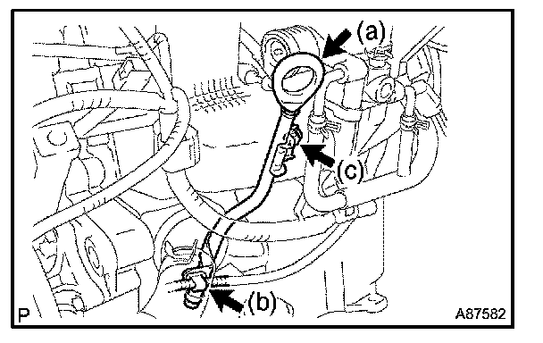 c. Install the fuel vapor feed hose No. 1 to the hose clamp.