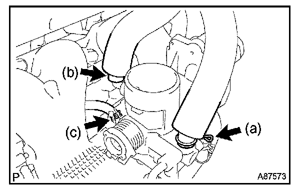 d. Disconnect the water by pass hose from the throttle motor body.