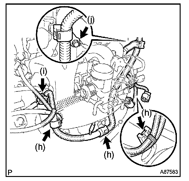 k. Connect the fuel vapor feed hose No. 1 to the throttle with motor body.