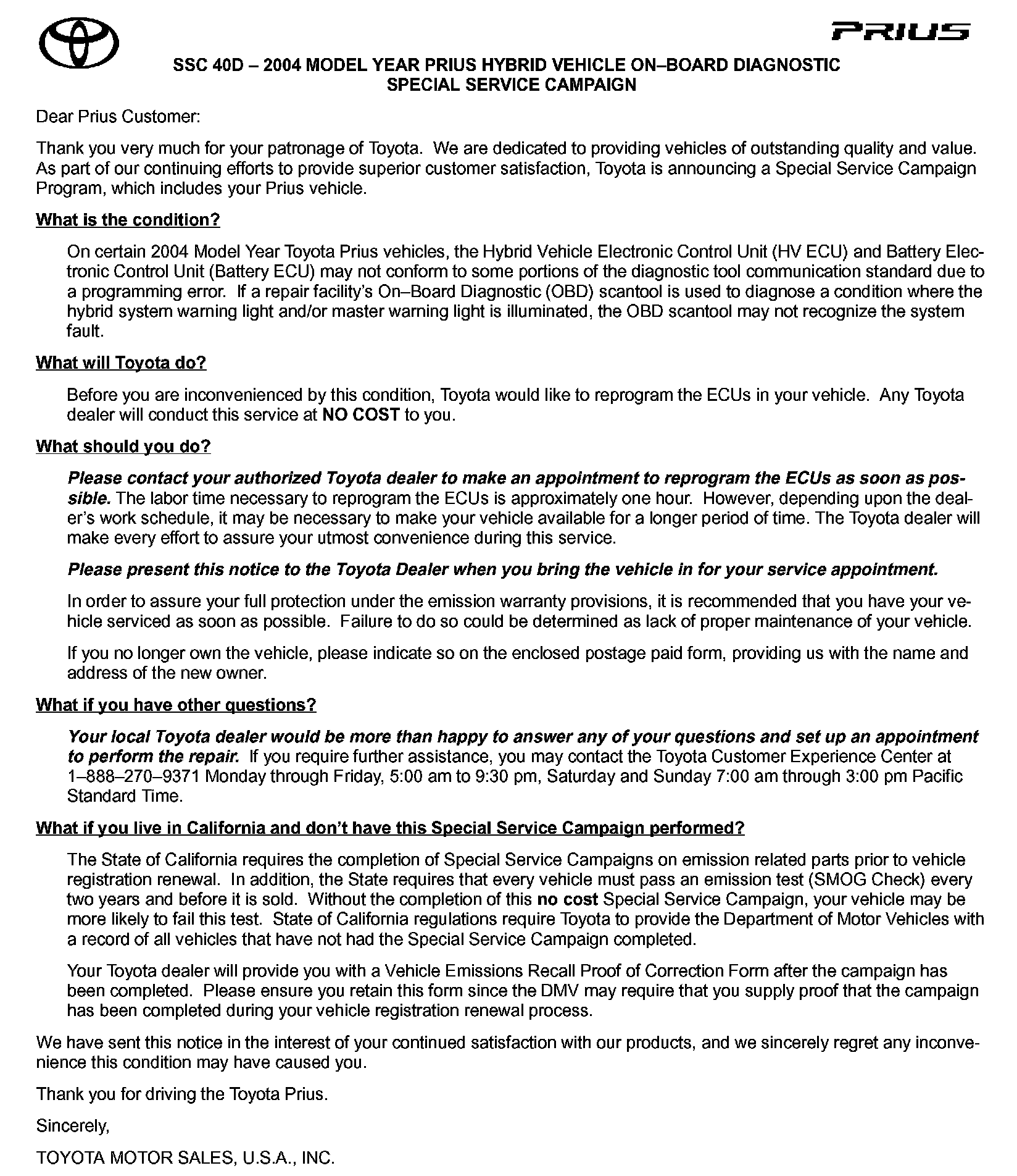 Recall - Hybrid Vehicle ECU Reprogramming