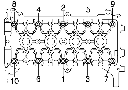 Using several steps, tighten the bolts and nuts with the specified torque in the sequence shown in the illustration.