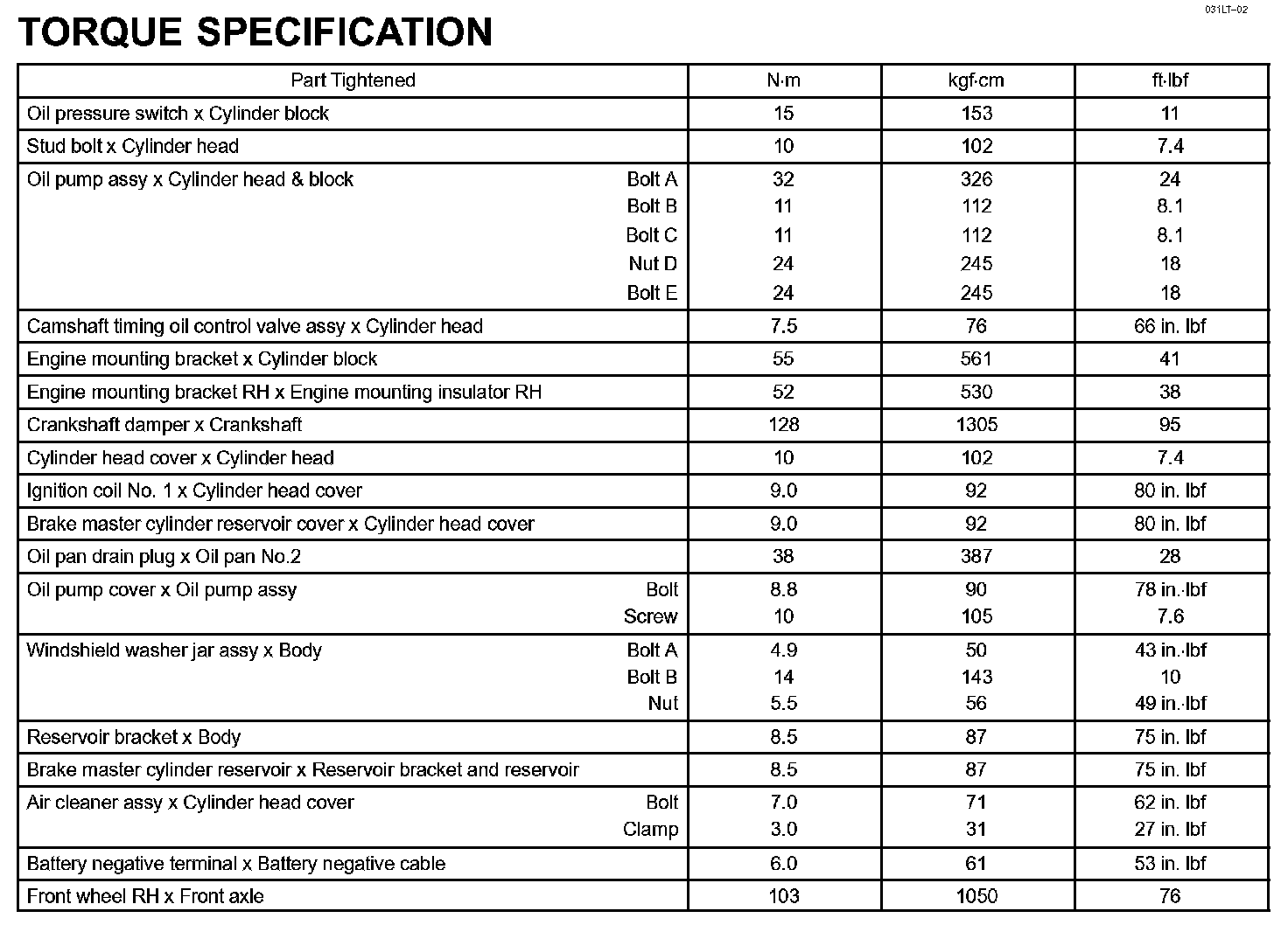 Lubrication - Torque Specification: