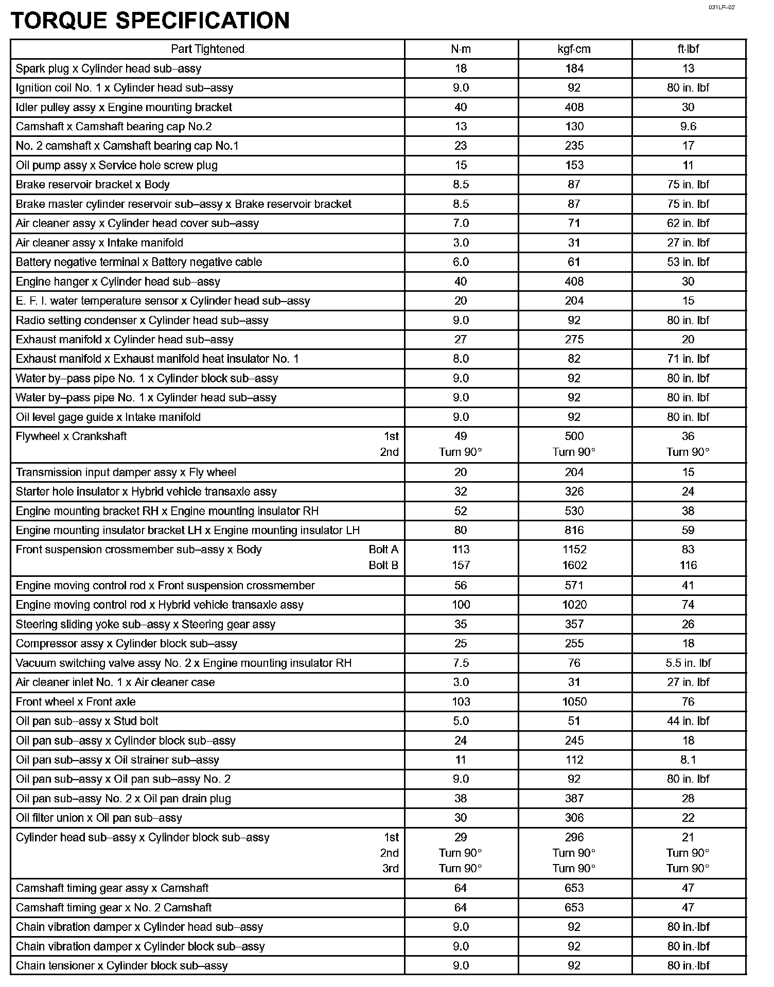 Engine Mechanical - Torque Specification Part 2: