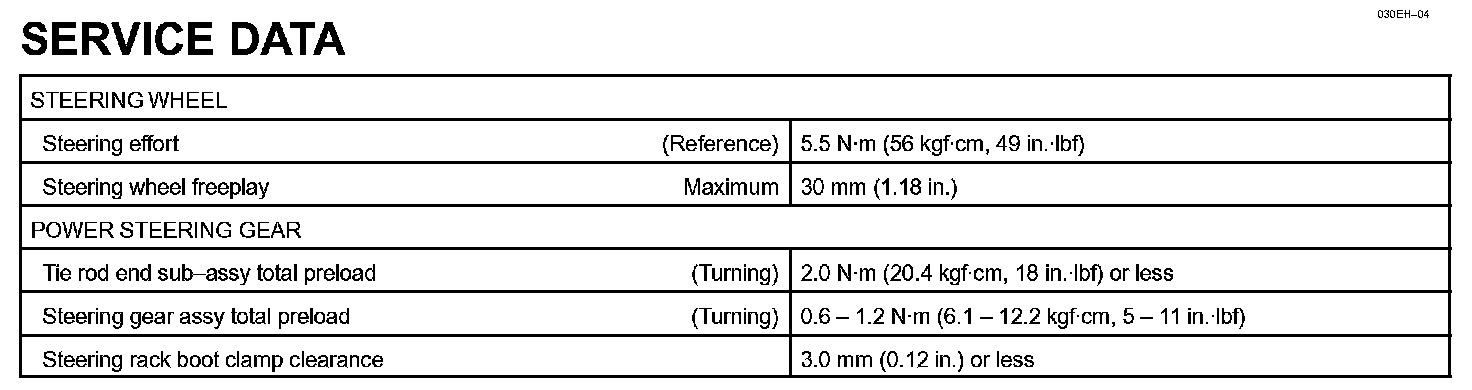 Power Steering - Service Data: