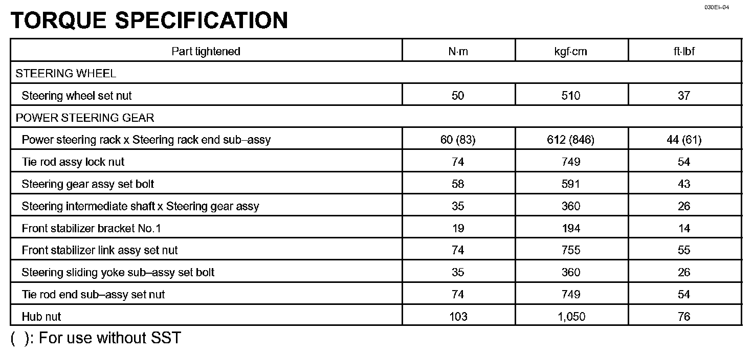 Power Steering - Torque Specification: