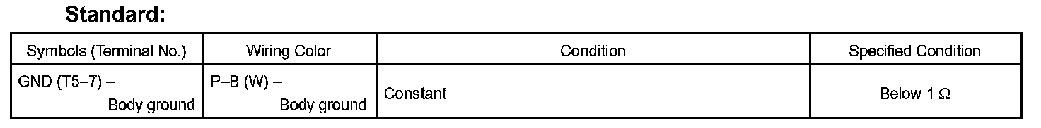 a. Disconnect the T5 amplifier connector, and measure the resistance between the terminal of the wire harness side connector and body ground.