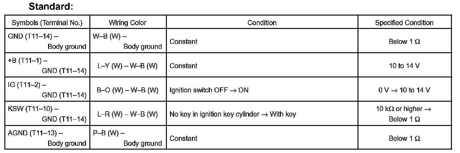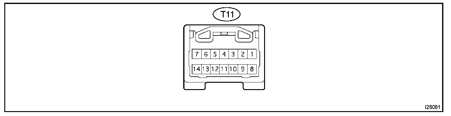 a. Disconnect the T11 ECU connector, and measure the voltage or resistance between each terminal of the wire harness side connector.