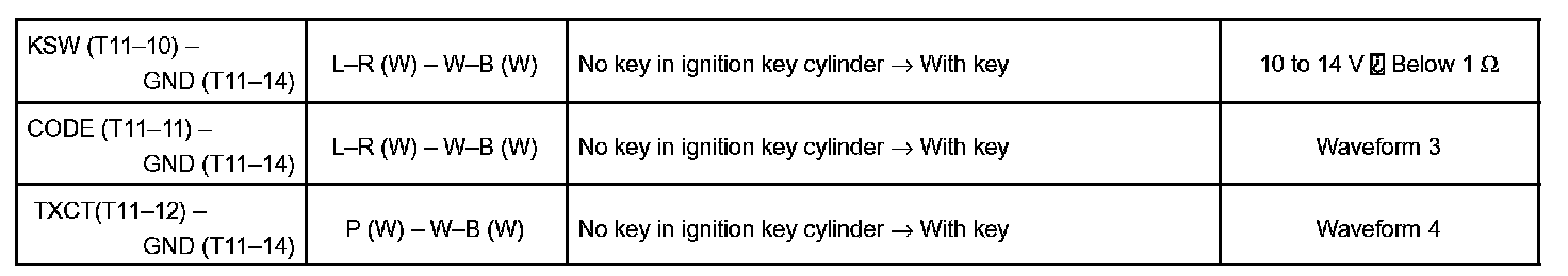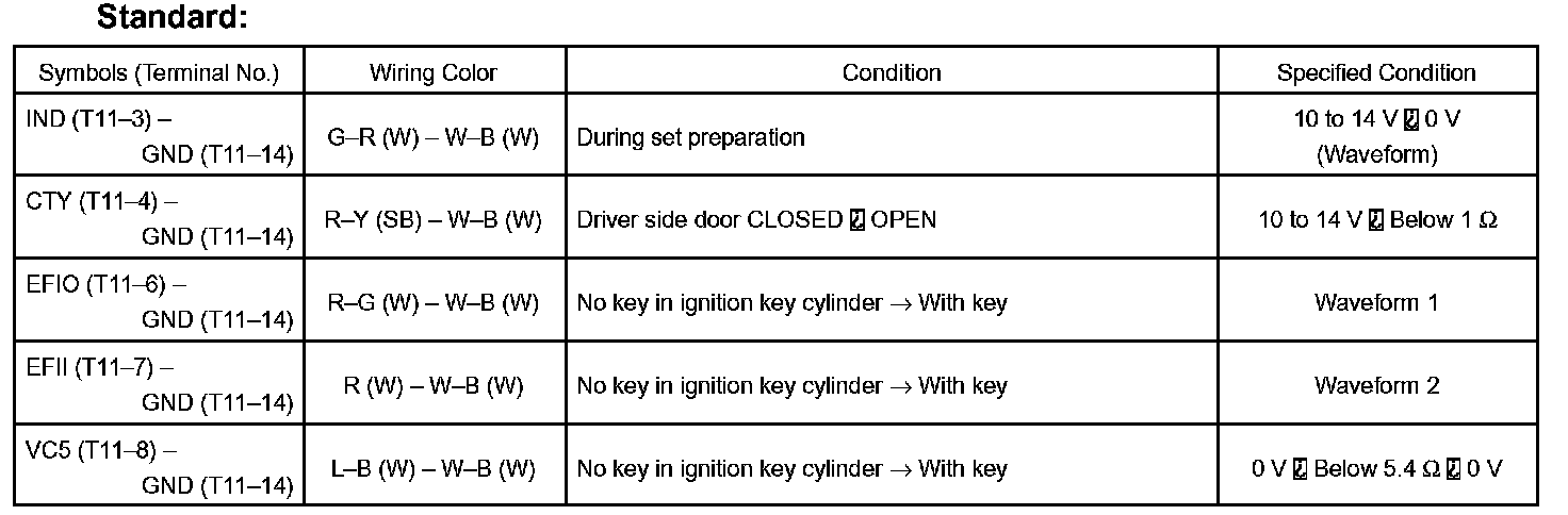 b. Reconnect the T11 ECU connector, and measure the voltage between each terminal of the connector.
