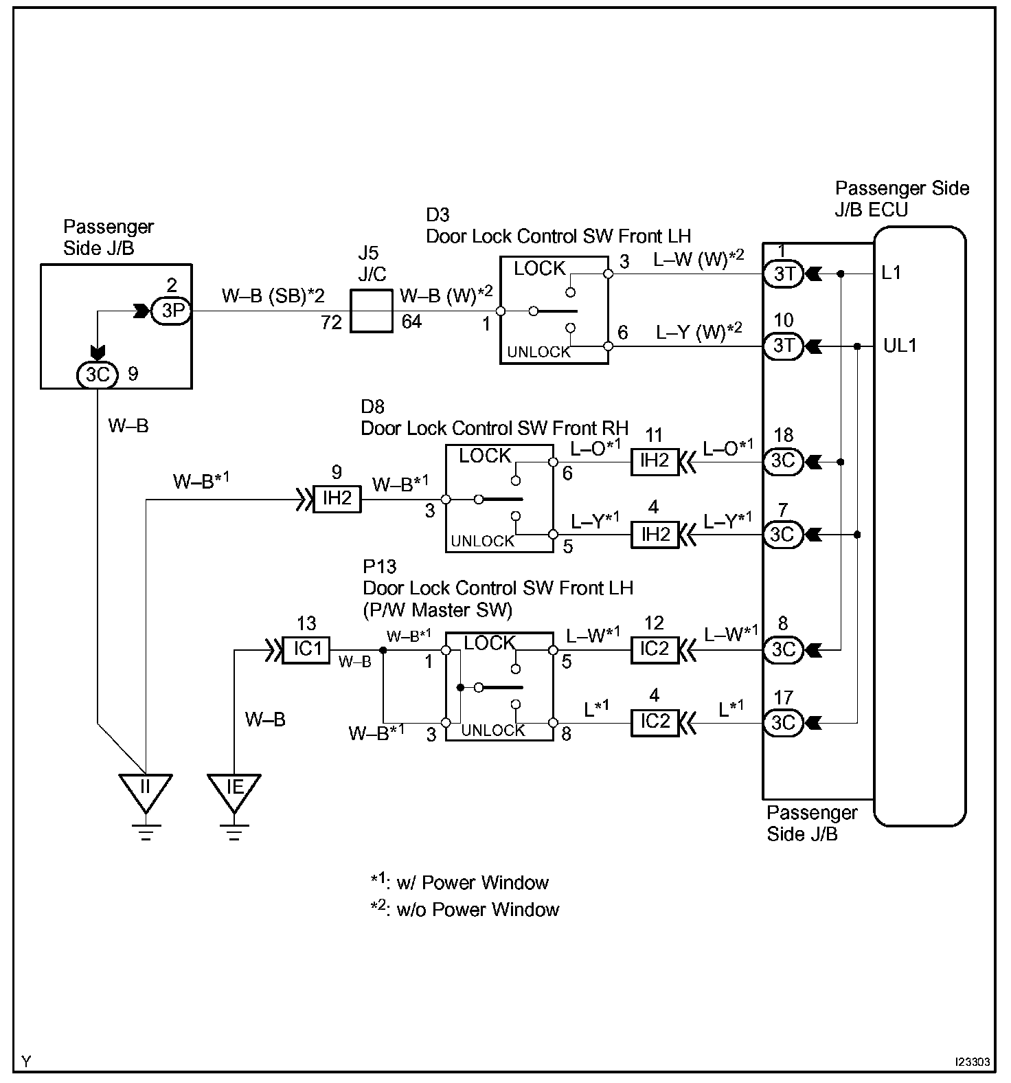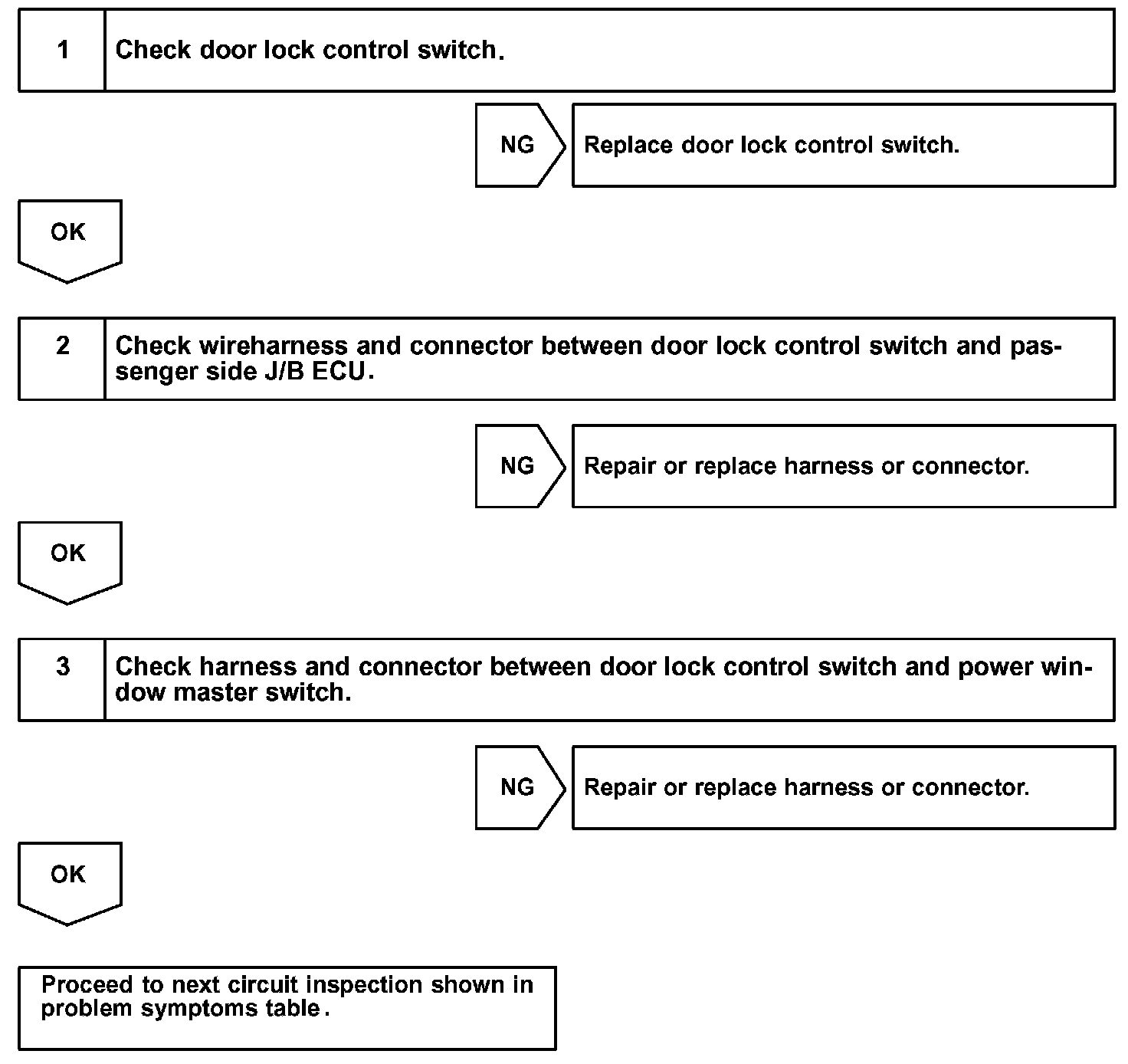 When the door lock control switch is turned to the the lock side, LOCK terminal of the switch is grounded, and when the switch is turned to the unlock side, the UNLOCK terminal is grounded.
