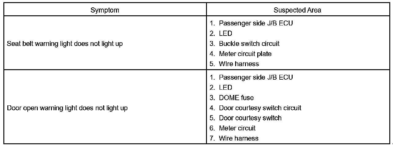 COMBINATION METER (Warning Lights):