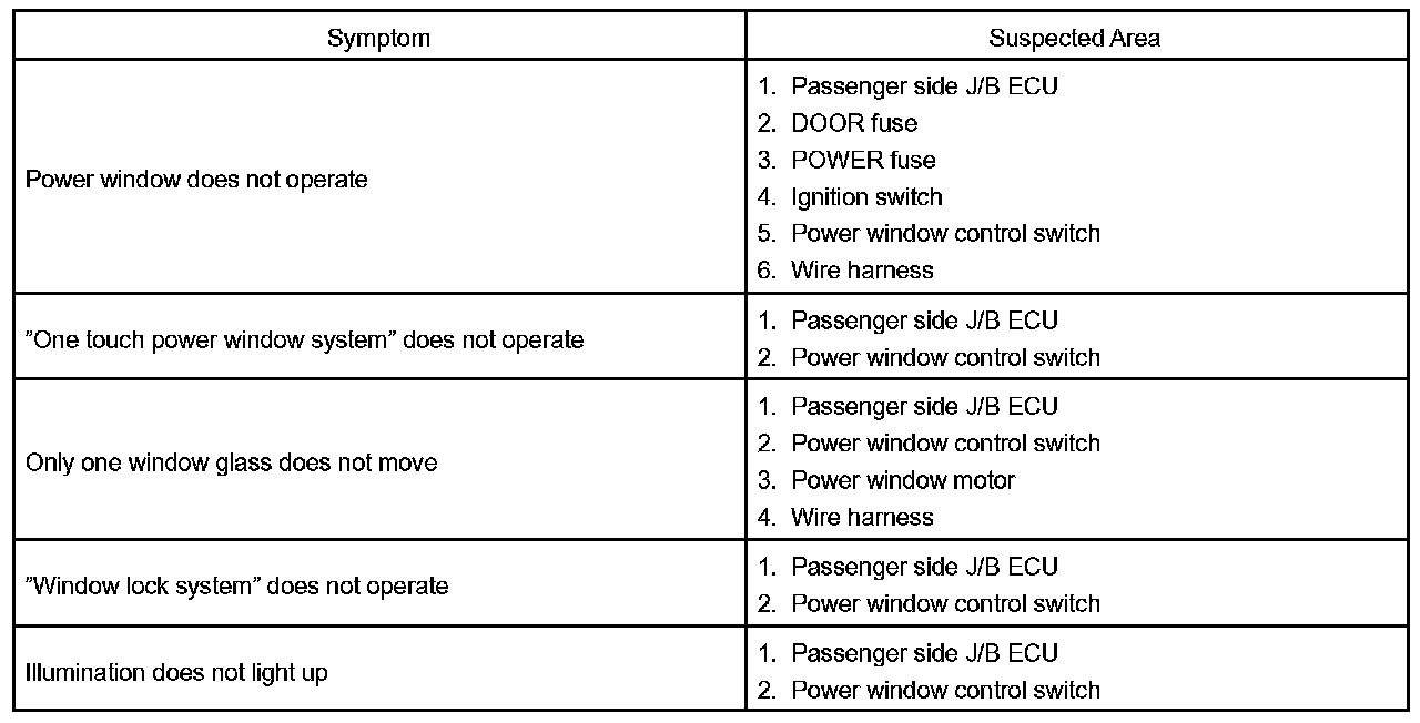 POWER WINDOW CONTROL SYSTEM: