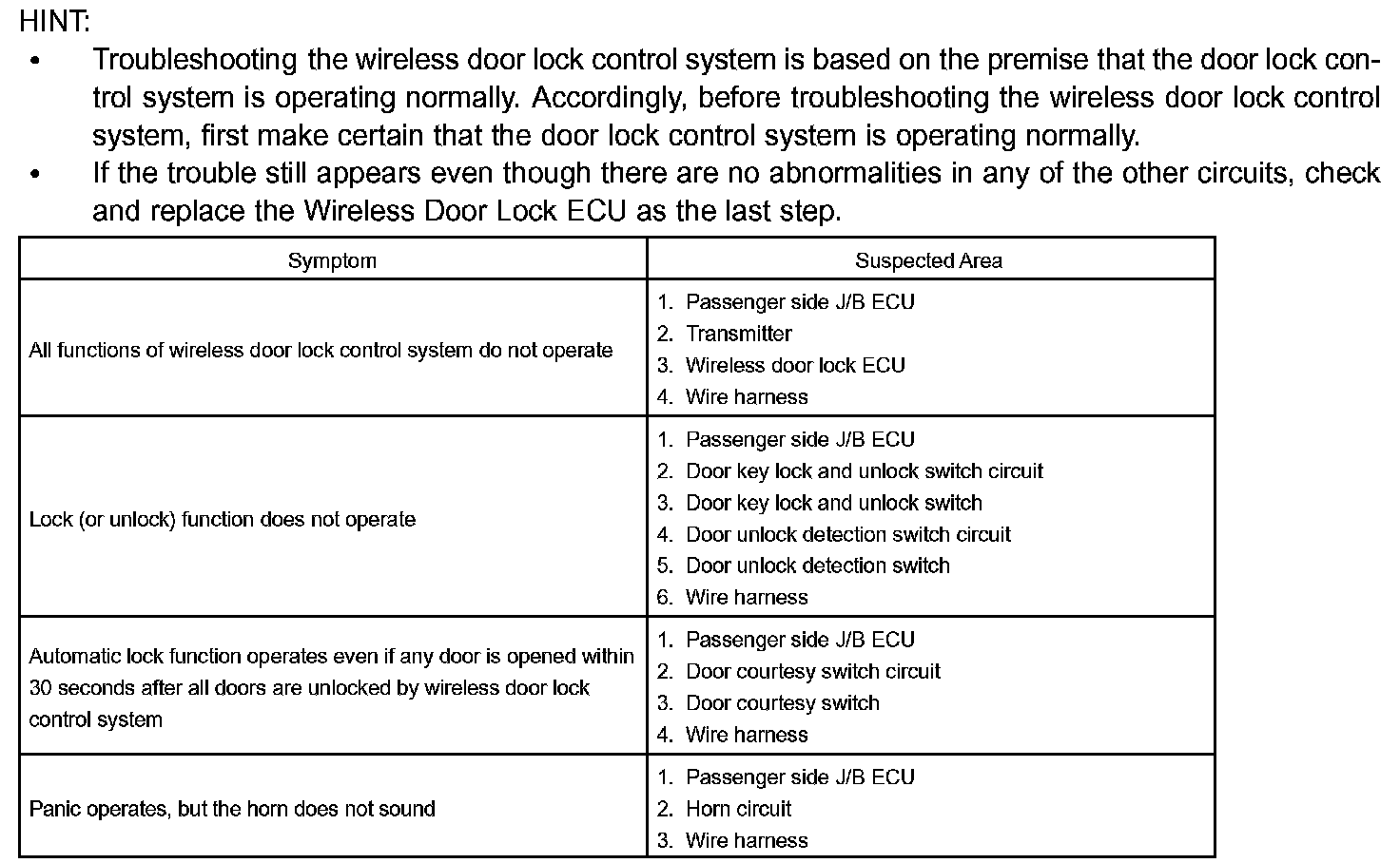 POWER DOOR LOCK CONTROL SYSTEM: