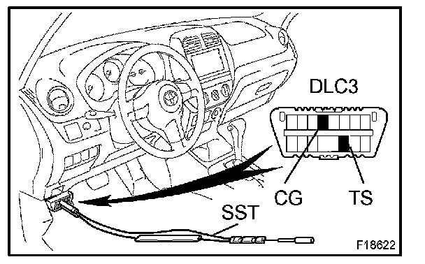 1. Using SST, connect the terminals Ts and CG of DLC3.