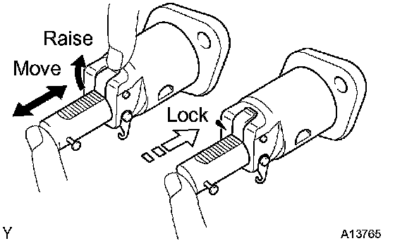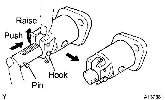 a. Release the ratchet pawl, fully push in the plunger and apply the hook to the pin so that the plunger cannot spring out.