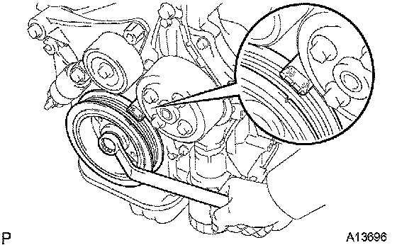 a. Turn the crankshaft pulley, and align its groove with timing mark 0 of the timing chain cover.