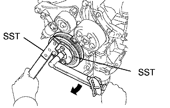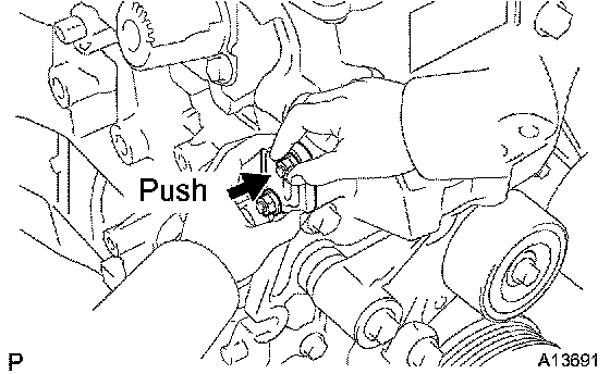NOTICE: As the drive belt tensioner should be torqued together with the timing chain cover, so be sure install it with in 15 minutes after the timing chain cover is installed.