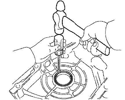 1. Using a screwdriver and a hammer, tap out the oil seal.