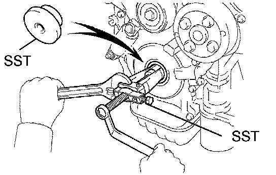 24. REMOVE CAMSHAFT TIMING SPROCKET AND VVT TIMING SPROCKET