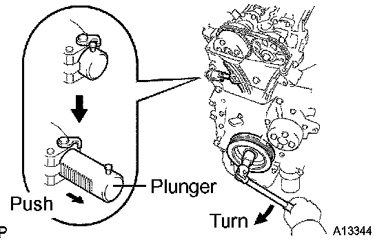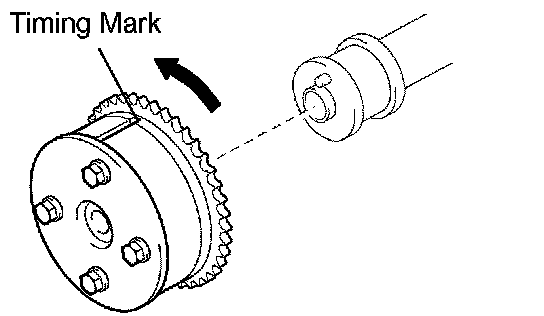 5. Check that the valve timing controller turns clockwise and that it is locked securely when the lock pin in hole is at the locking point.