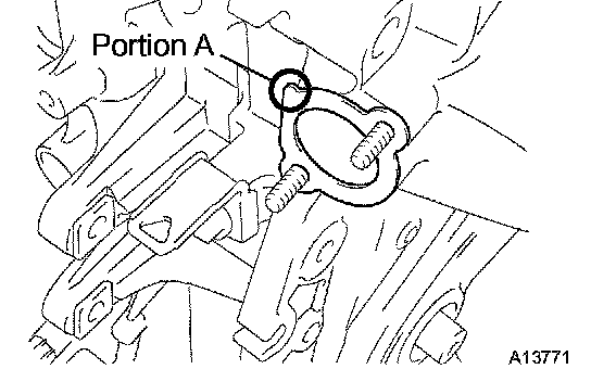 b. Place a new gasket on the timing chain cover with portion A facing as shown in the illustration.