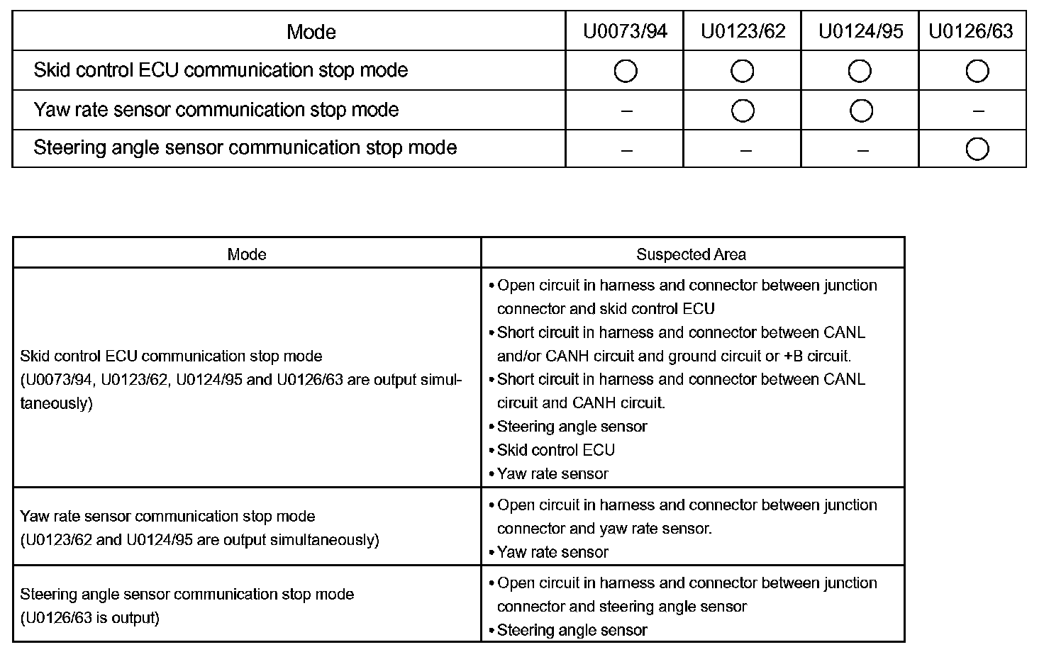 DTCS Combination Table: