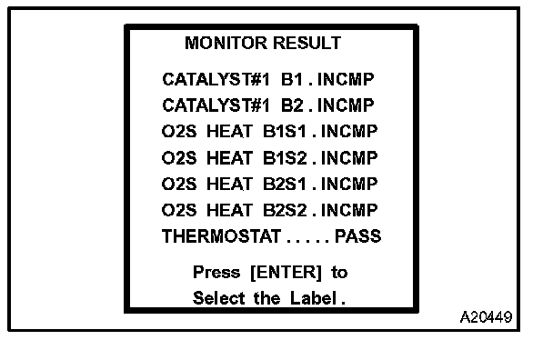 CHECKING MONITOR STATUSHINT: "MONITOR RESULT" indicates normal or malfunction of each component and system when judgment has done.