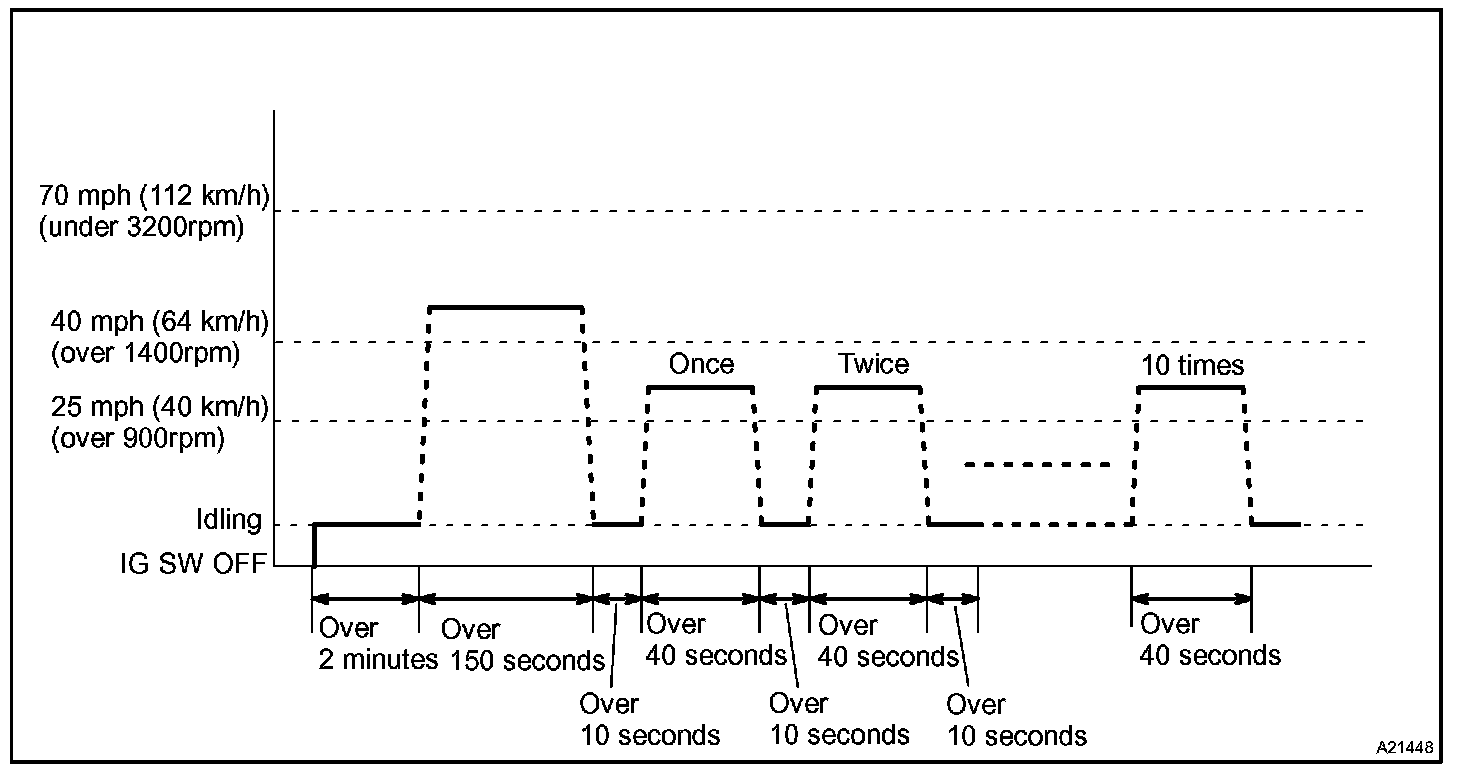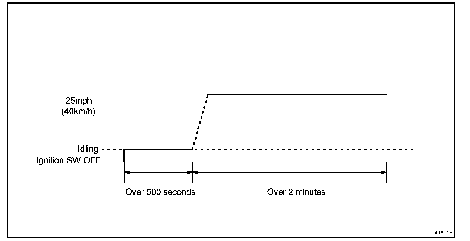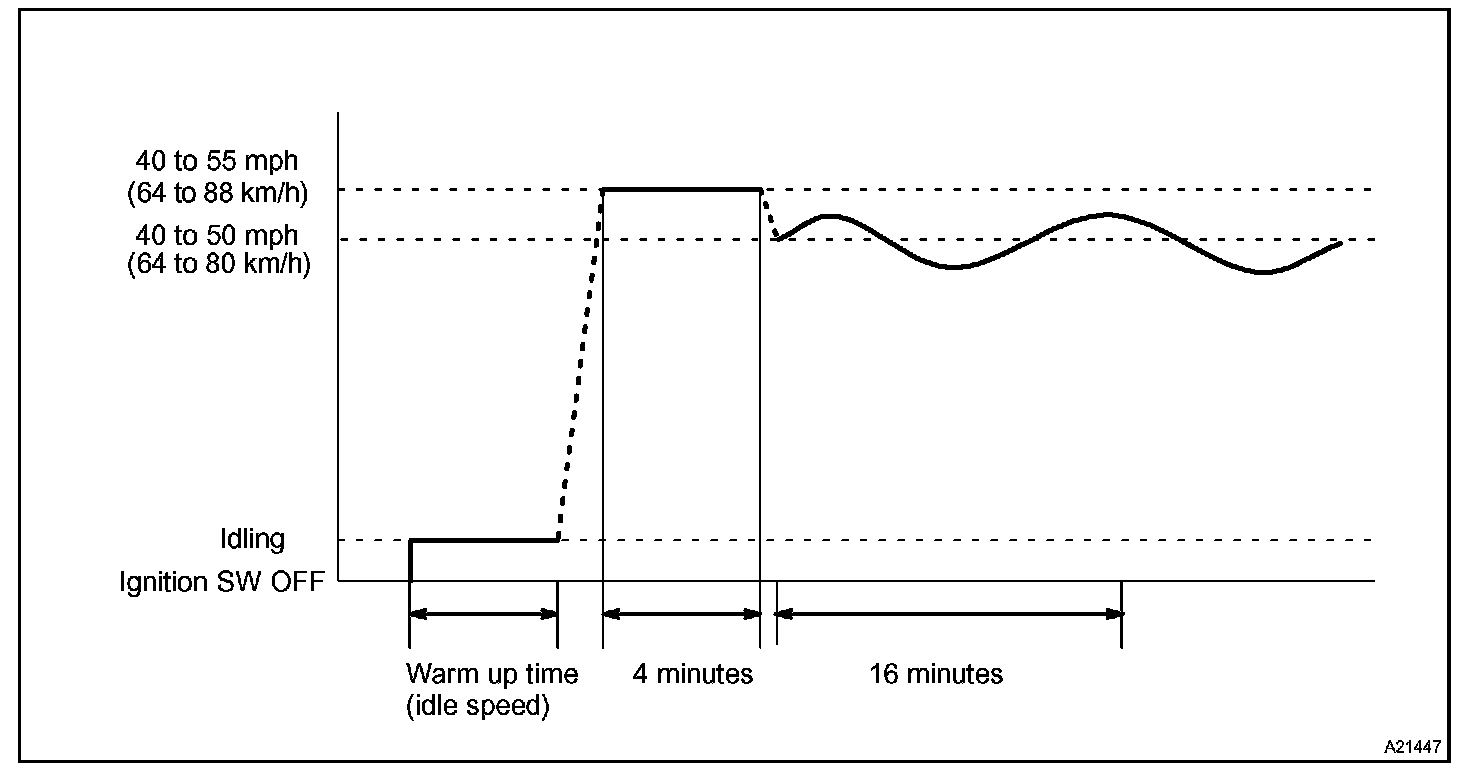 If IAT is less than 10 °C (50 °F) when the engine was started, drive the vehicle at 40 - 55 mph (64 - 88 km/h) for an additional 4 minutes.