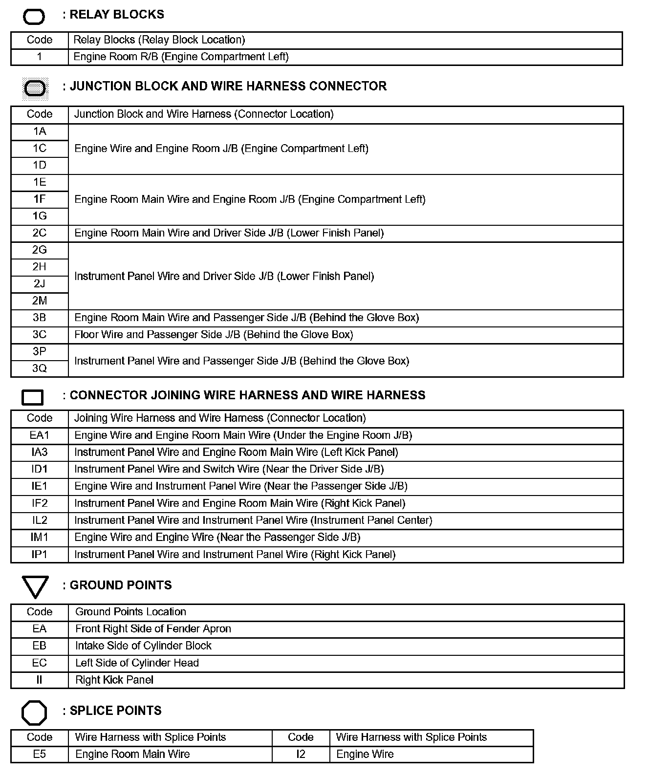 Locations: The locations of components, connectors, ground points, and splices referred to within these diagrams can be found at Vehicle Locations. Locations