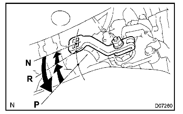 When moving the shift lever from the N position to the other positions, check that the lever can be shifted smoothly and accurately into each position and that the position indicator is aligned with the correct position.