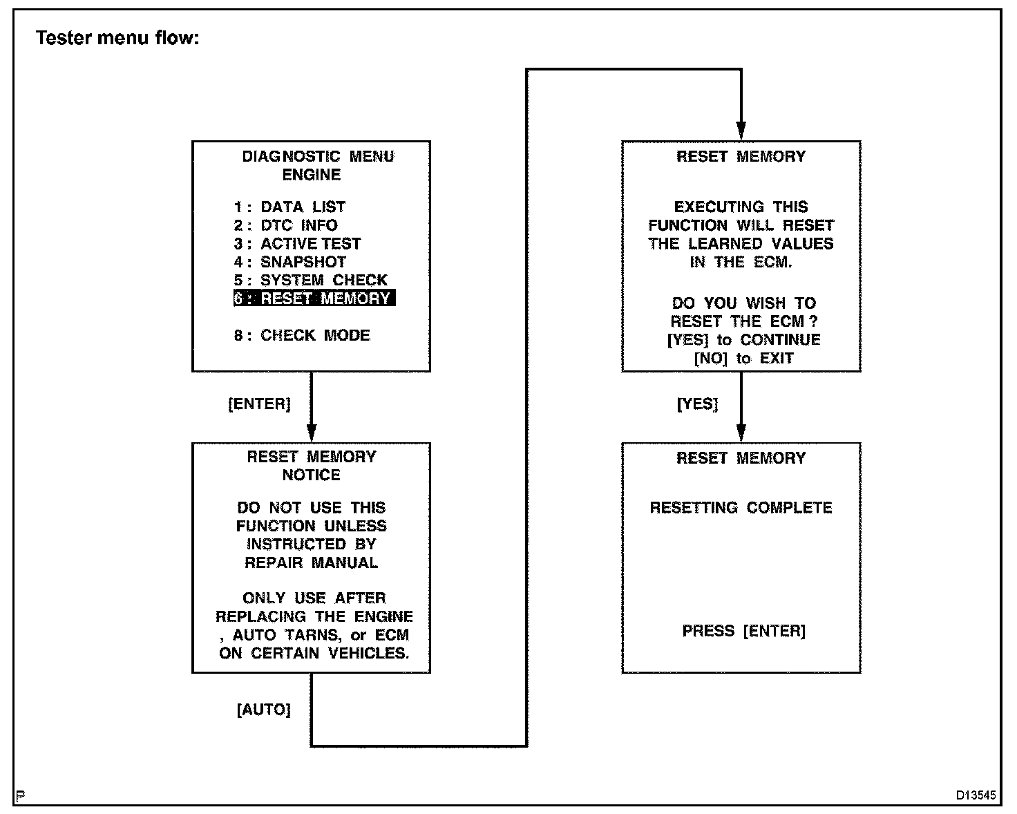 CAUTION: After performing the RESET MEMORY, be sure to perform the ROAD TEST described earlier in this section.