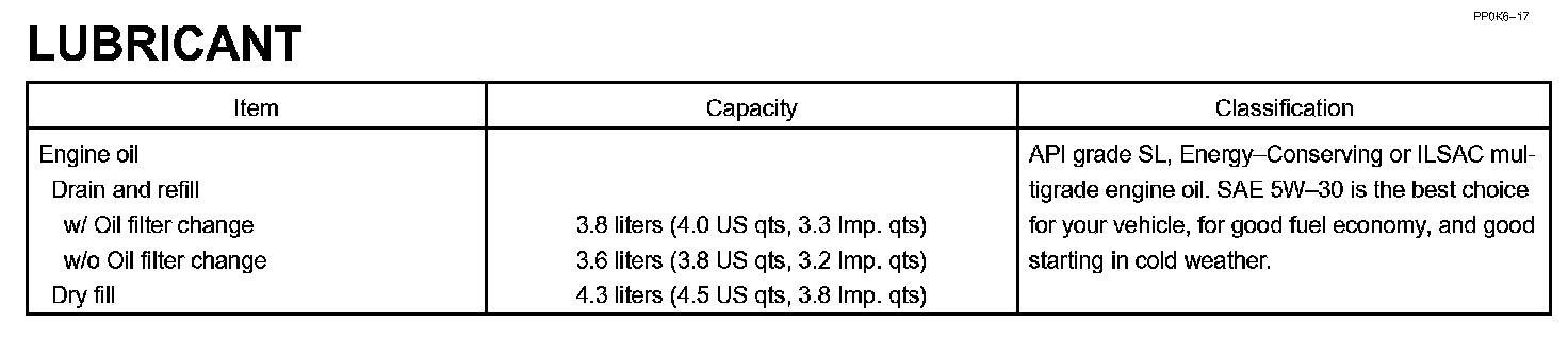 GRADE: API grade SL Energy-Conserving or ILSAC multigrade engine oil (Use Toyota approved "Toyota Genuine Motor Oil" or equivalent):