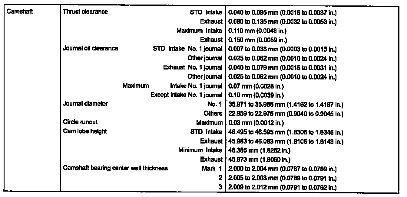 Camshaft Timing Sprocket x Exhaust Camshaft 54 N.m (551 kgf.cm, 40 ft.lbf)