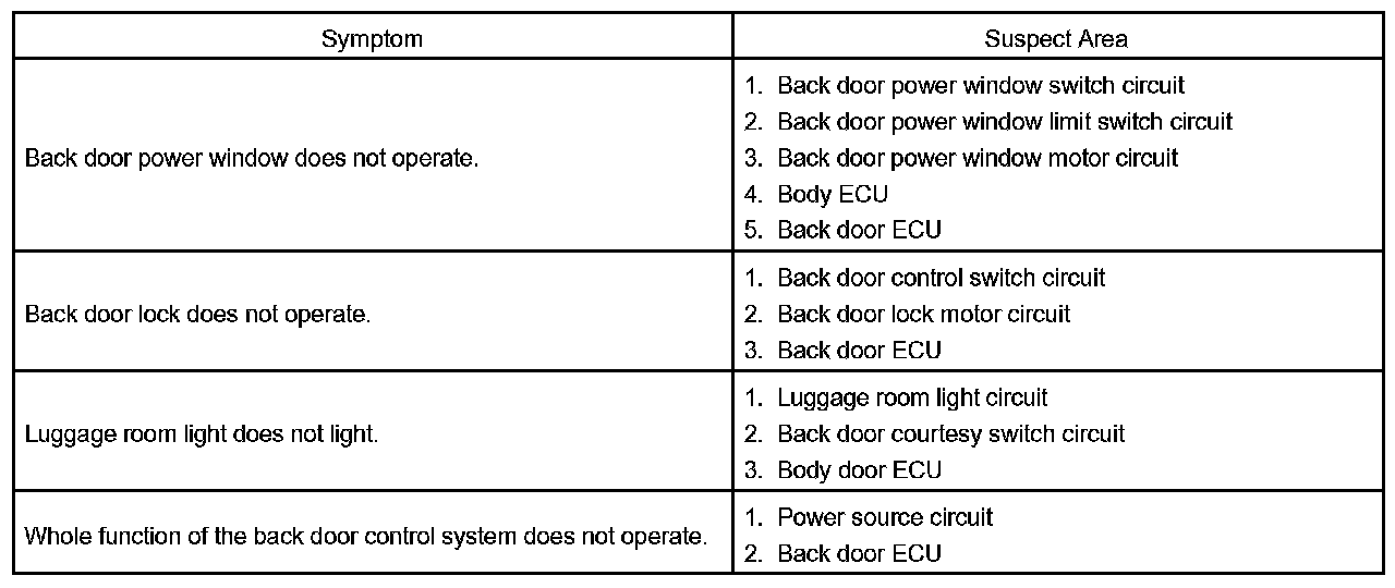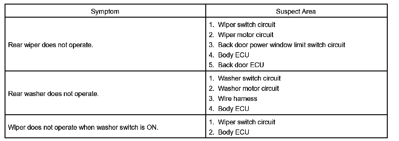 Problem Symptoms Table - Rear Wiper And Washer: