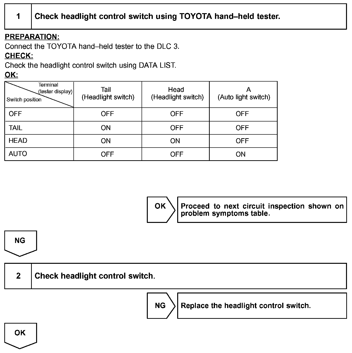 In case of using the TOYOTA hand-held tester, start the inspection from step 1 and in case of not using the TOYOTA hand-held tester, start from step 2.