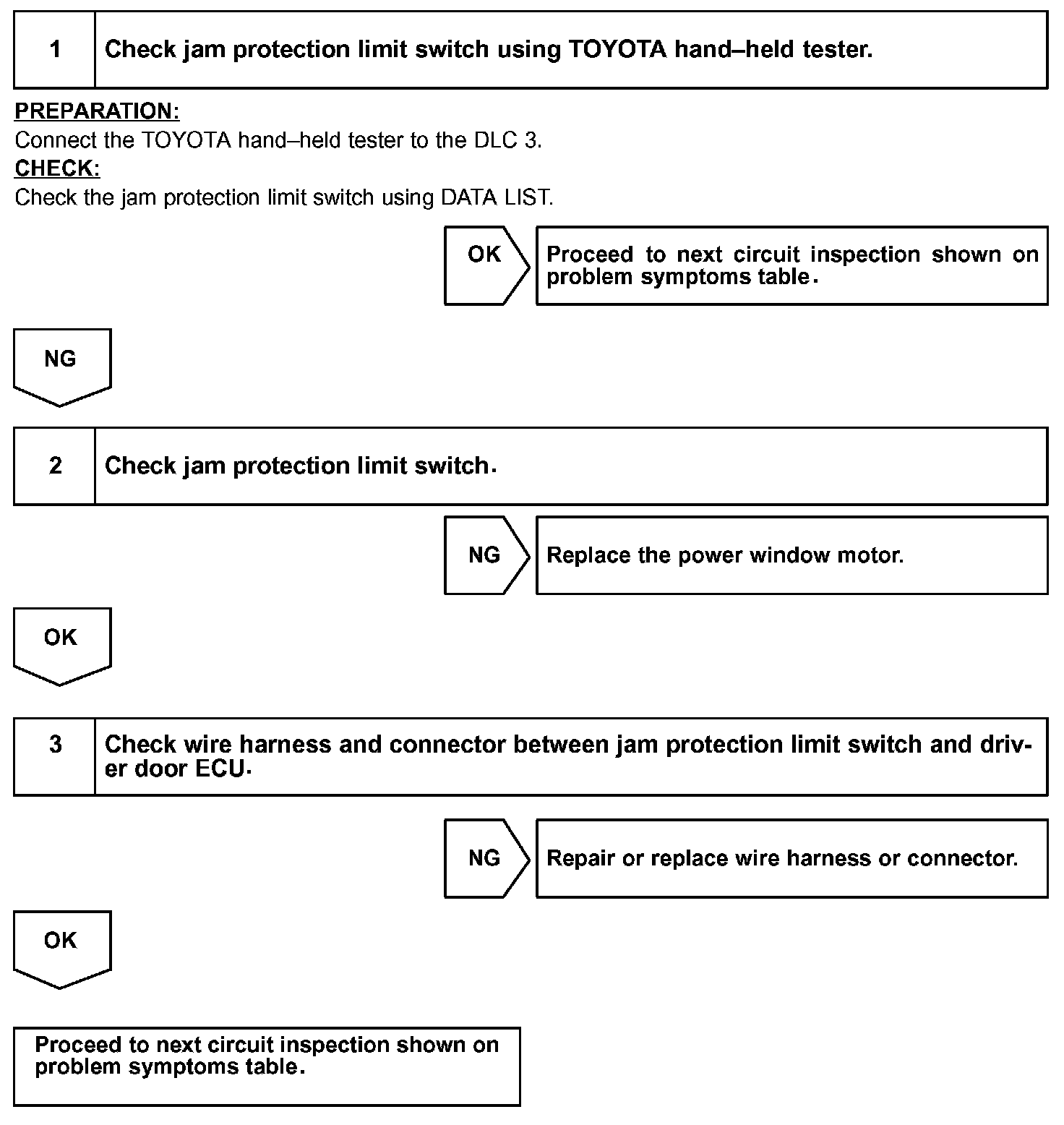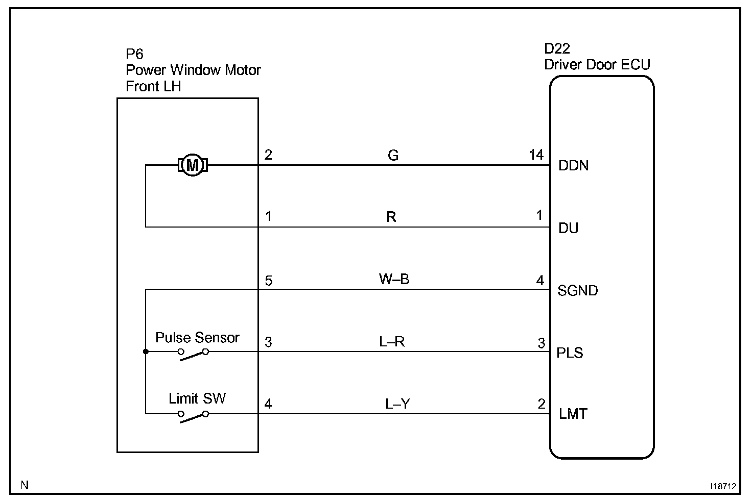 CIRCUIT DESCRIPTIONJam protection limit switch is built in the power window motor. This switch functions to turn "OFF" before the top dead center, and ECU reads this "OFF" signal resulting in closing the window fully.