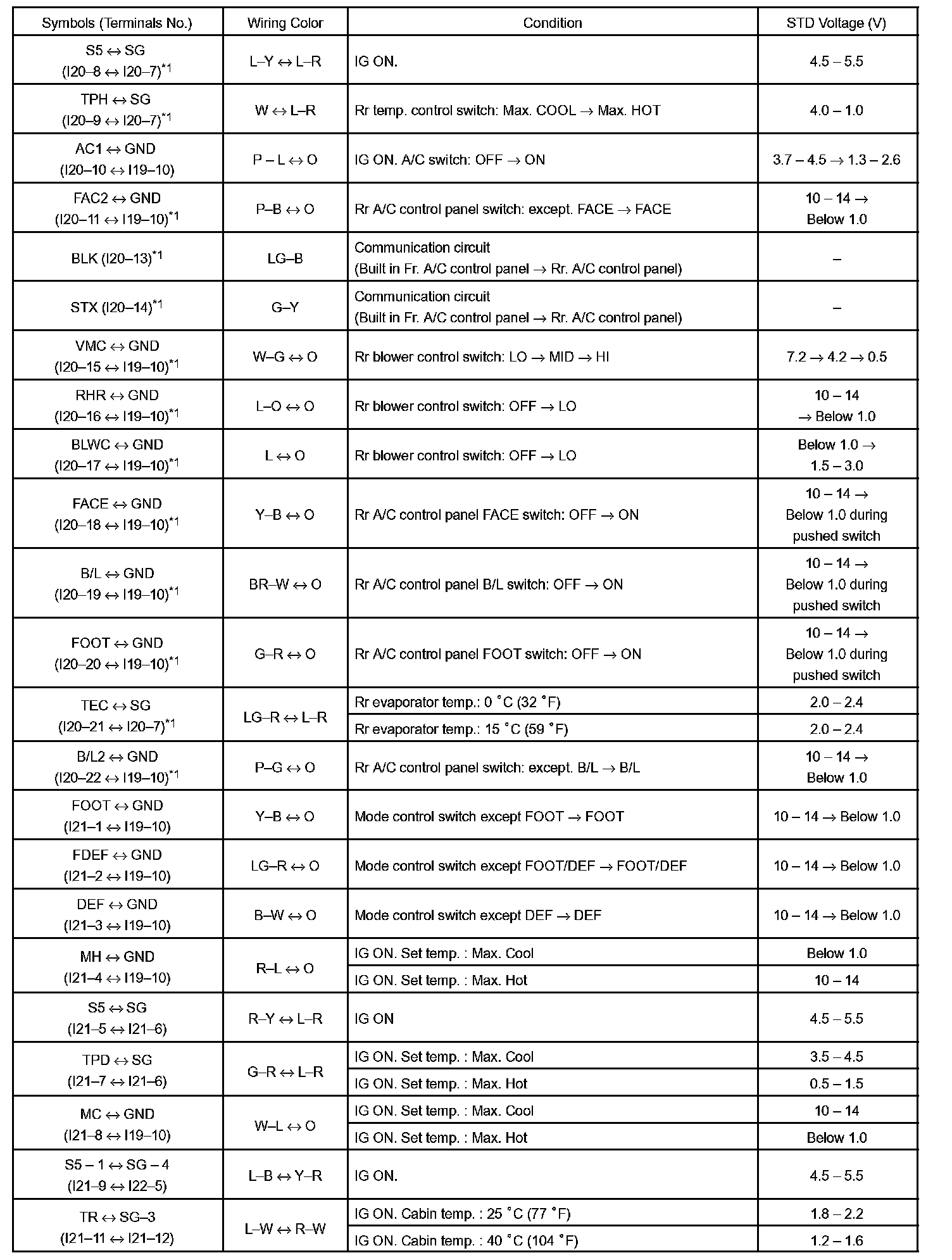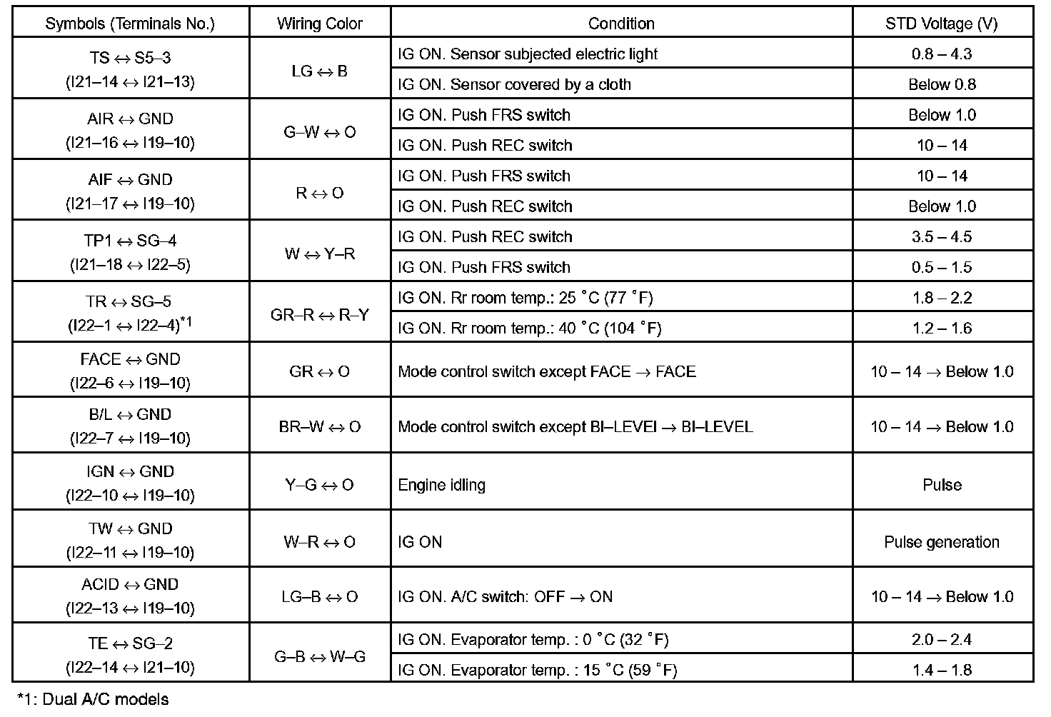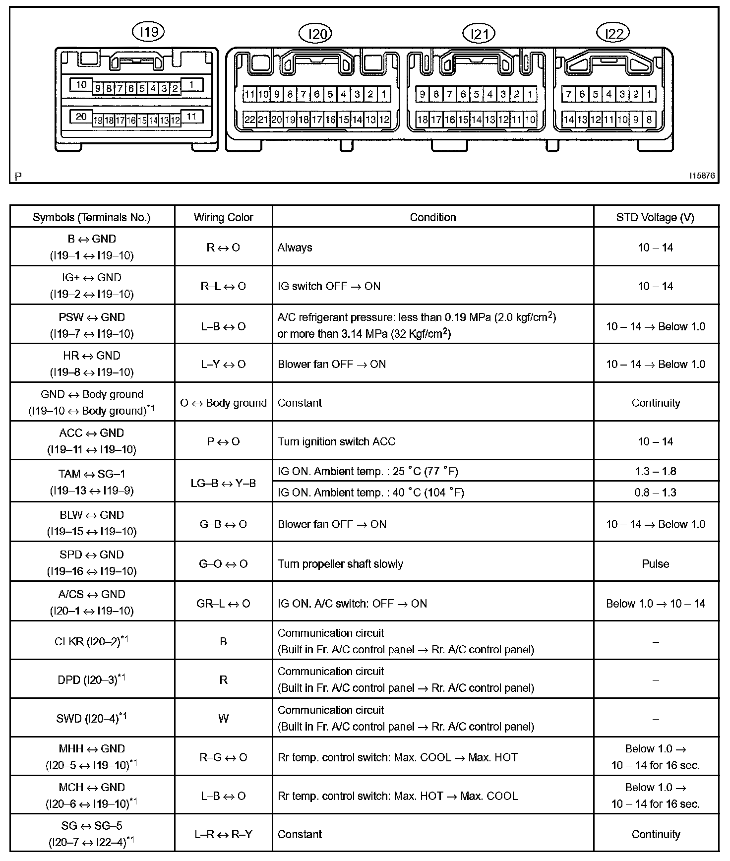 Pinout Values and Diagnostic Parameters