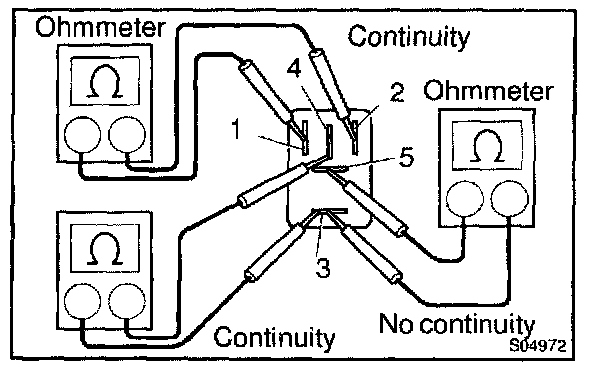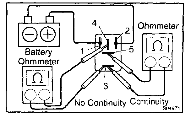 b. Using an ohmmeter, check that there is no continuity between terminals 3 and 4.