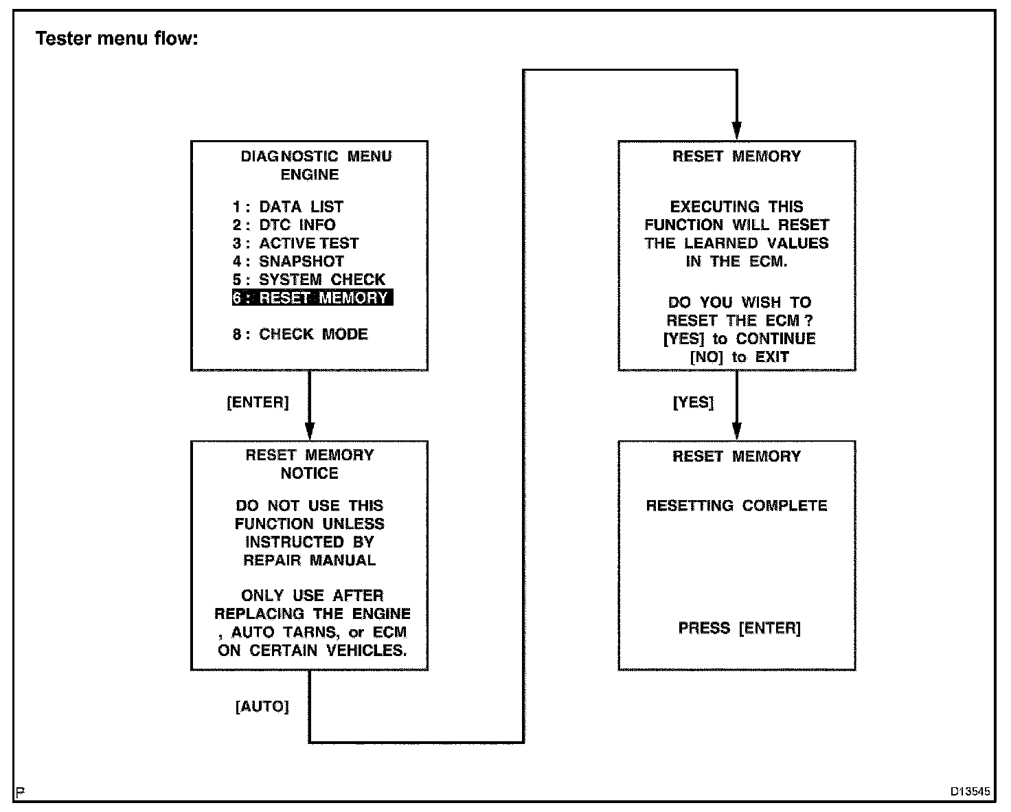 CAUTION: After performing the RESET MEMORY, be sure to perform the ROAD TEST described earlier.