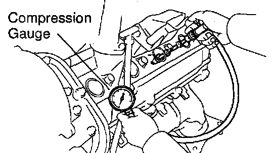 e. If the cylinder compression in one or more cylinders is low, pour small amount of engine oil into the cylinder through the spark plug hole and repeat steps a through c for cylinders with low compression.