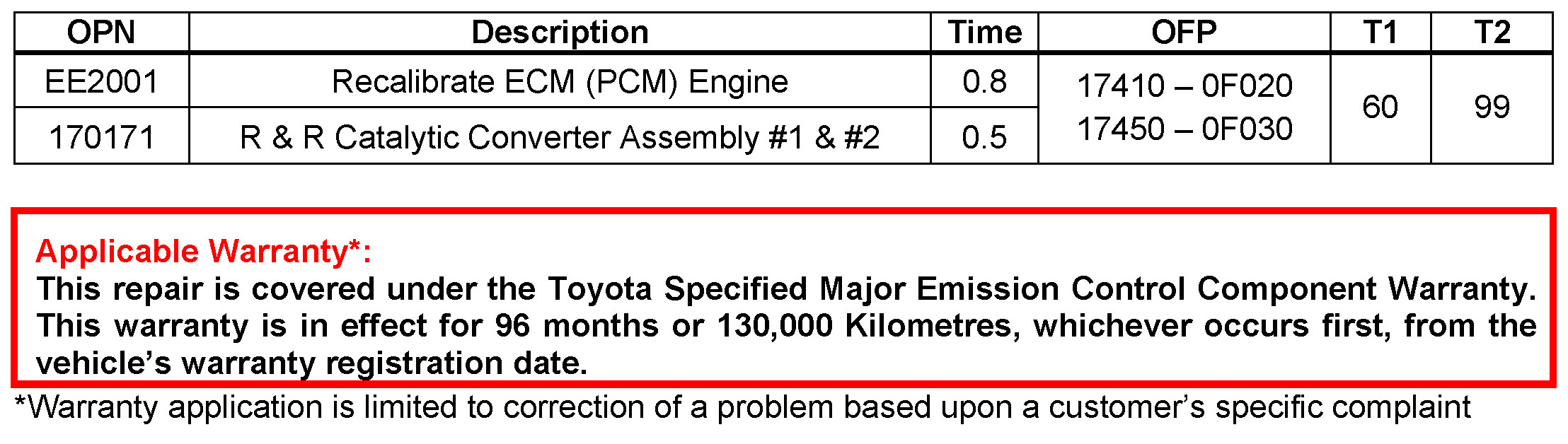 - New ECM (PCM) calibration number