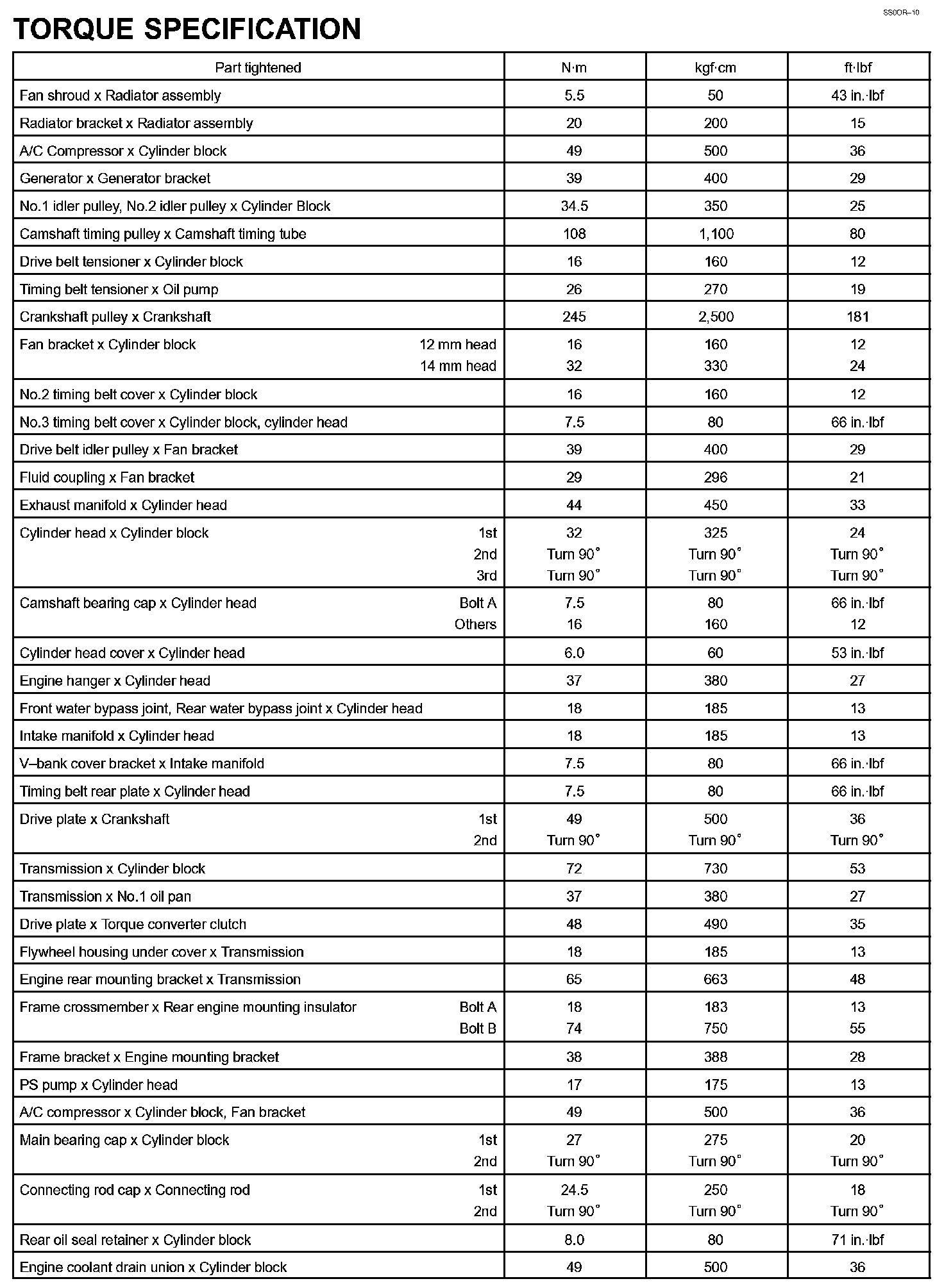 Engine Mechanical - Torque Specification Part 1: