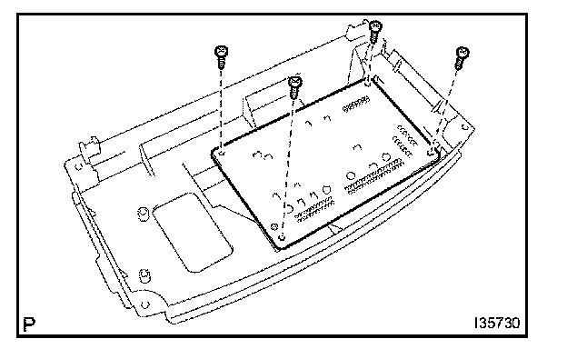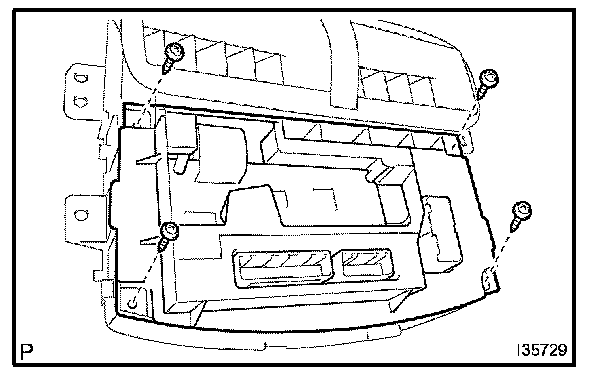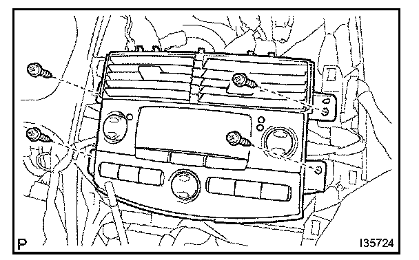 d. Remove the 4 screws, and the air conditioner amplifier assy.