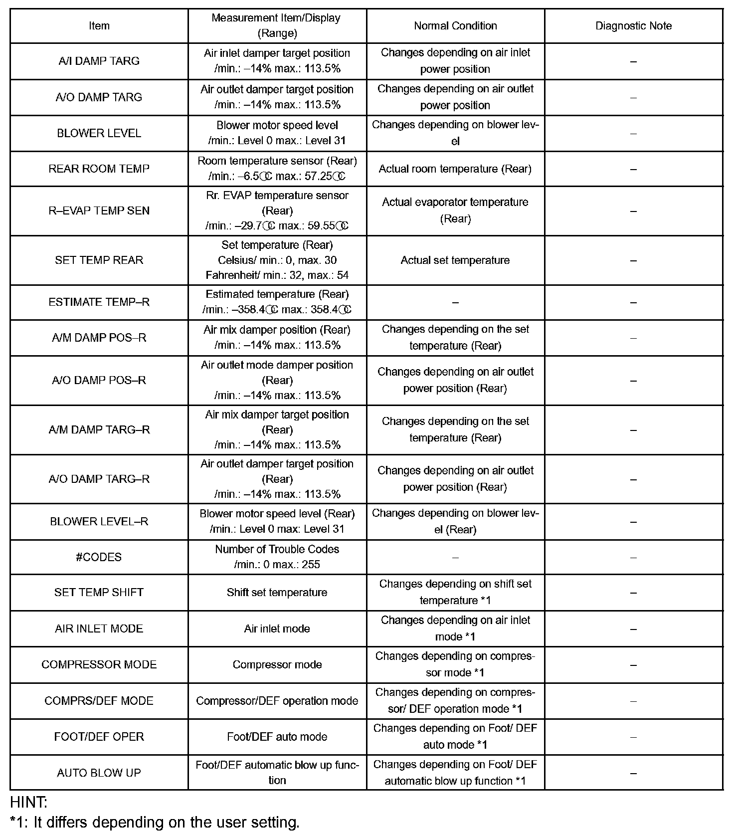DATA LISTHINT: From to the DATA LIST displayed by hand-held tester, you can read the value on the display, sensor, actuator and so on without parts removal. Reading the DATA LIST as the first step of troubleshooting is one way to shorten the labor time.