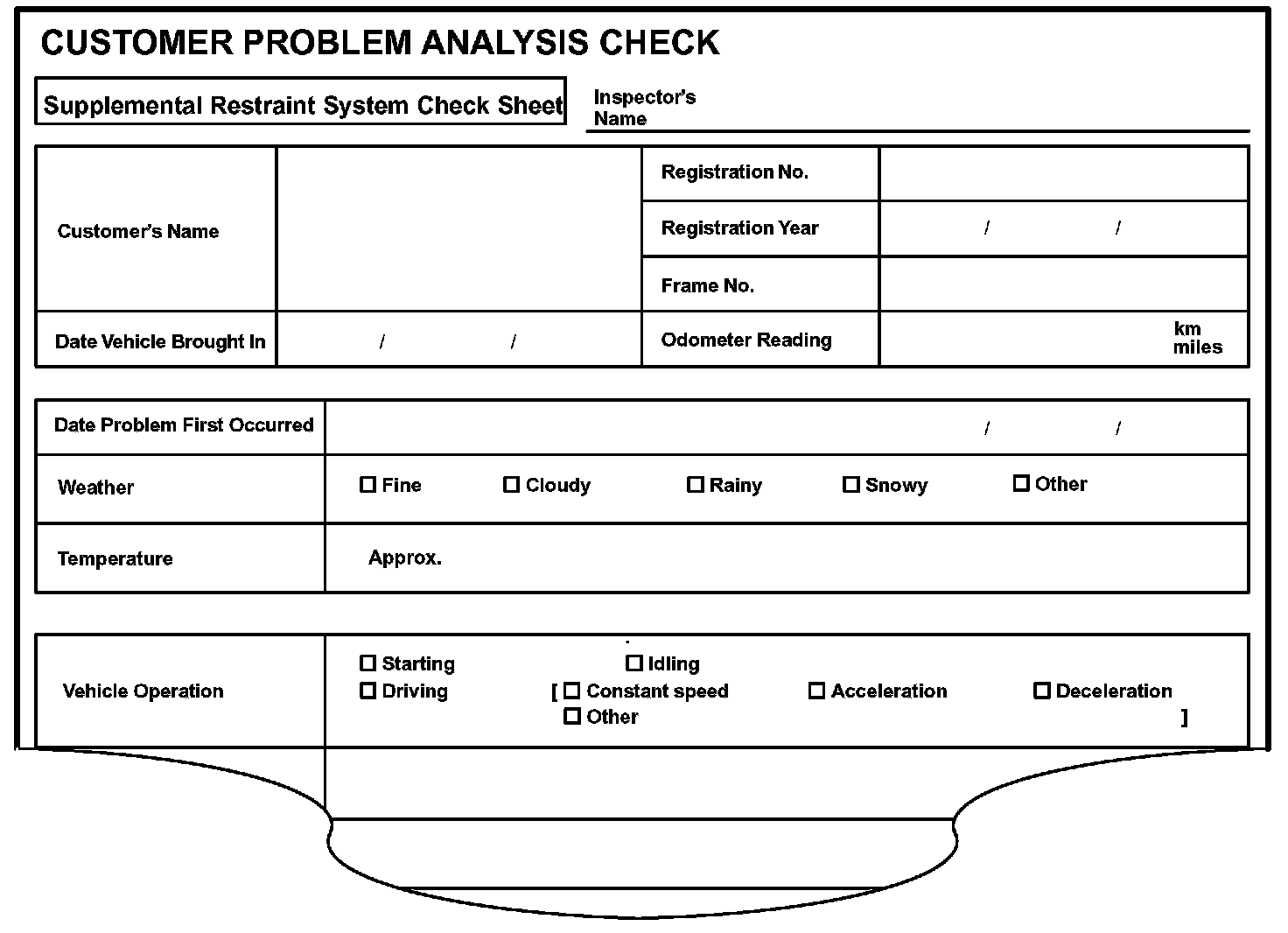 - The following 5 items are important points in the problem analysis. Past problems which are thought to be unrelated and the repair history, etc. may also help in some cases. Therefore, as much information as possible should be gathered and its relationship with the problem symptoms should be correctly ascertained for use as a reference in troubleshooting. A customer problem analysis table is provided for your use in the applicable diagnostic procedures for each system.