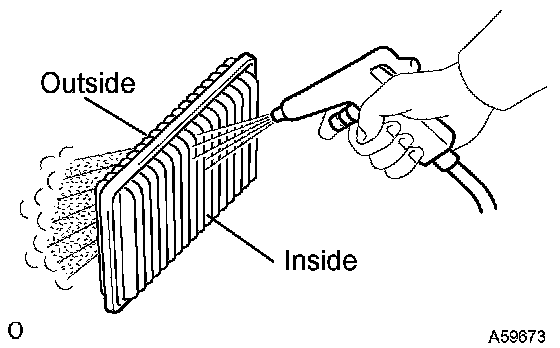 c. Clean the filter with compressed air. First blow from the inside thoroughly and then blow from the outside of the filter.