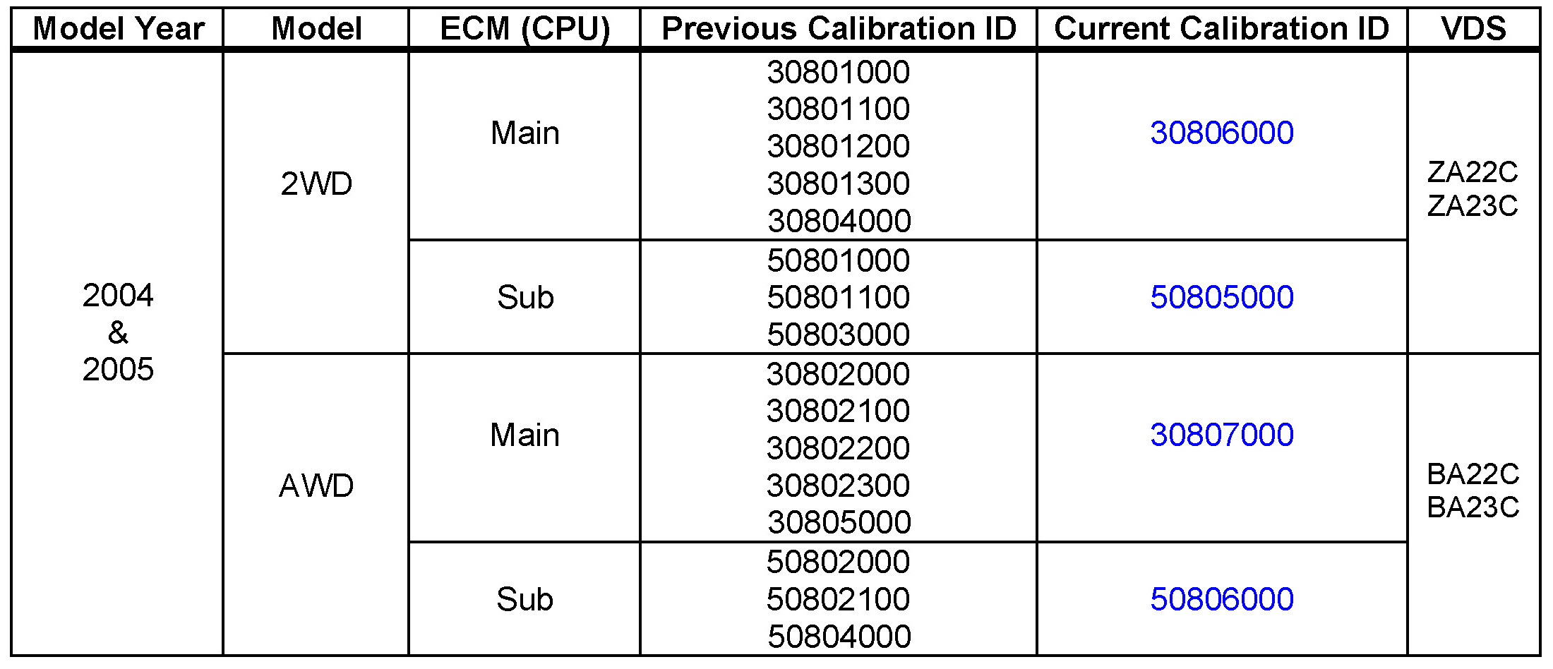 - If Calibration ID matches "Previous Calibration ID" as shown in Calibration Identification Chart, proceed with flash reprogramming.