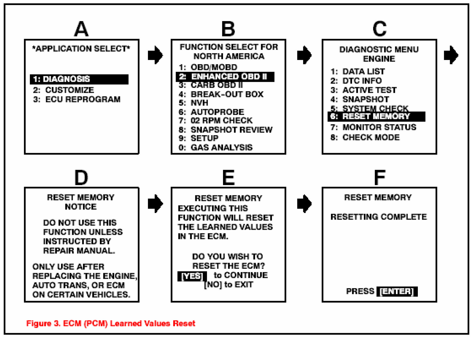 5. Reset the ECM learned values using the diagnostic tester. Refer to the procedures.