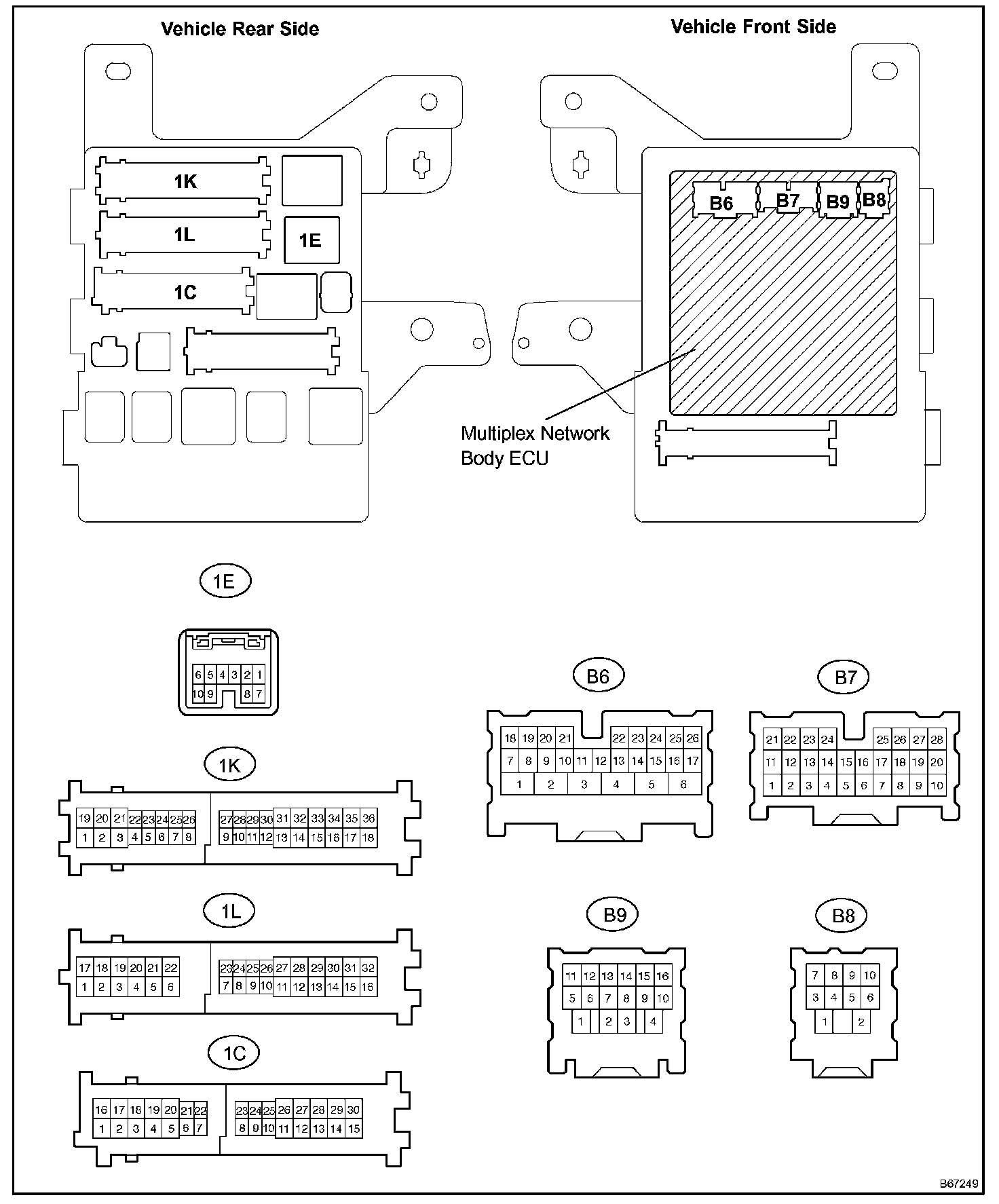 a. Disconnect the B7 ECU, 1C, 1E, 1K and 1L and 1C J/B connectors.