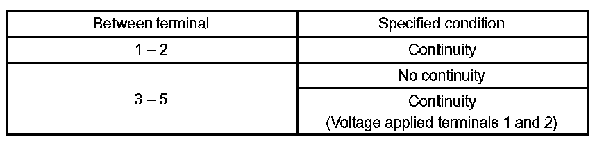 1. Apply battery voltage across terminals 1 (+B) and 2 (E2G).
